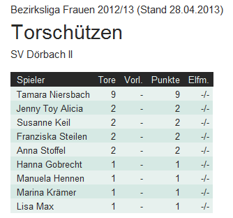 Torschützinnen Fr 2 - Homepage SV Dörbach