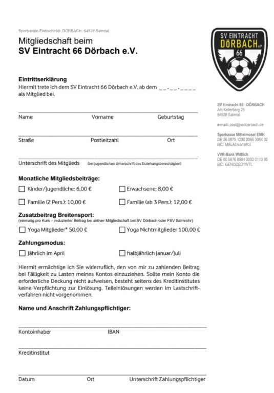 Mitgliedsantrag - Homepage des SV Eintracht 66 Dörbach